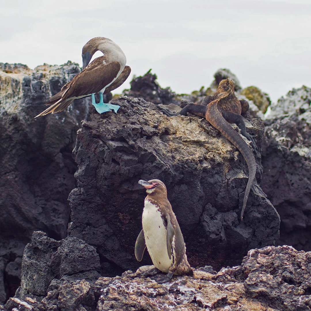 Visitarás el Islote Tintoreras, una grieta de lava donde descansan los tiburones tintoreras. Harás una caminata para observar lobos marinos, pelícanos, piqueros de patas azules e iguanas marinas, y en ocasiones, pingüinos de Galápagos.